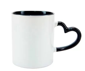 Caneca Branca Com Alça Coração E Interior Preto - PRODUTO LISO, SEM PERSONALIZAÇÃO